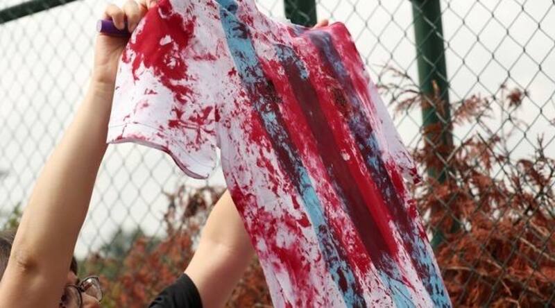Grupos palestinos aparecieron ayer con camisetas manchadas con presunta sangre en el predio donde entrena la Selección Argentina.