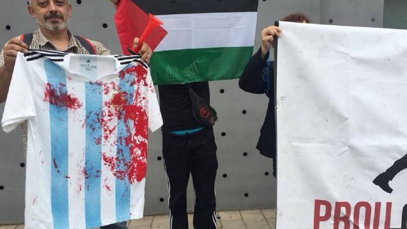 Desde hace varios días, grupos palestinos realizaron diferentes manifestaciones y escraches con el objetivo de suspender el partido.