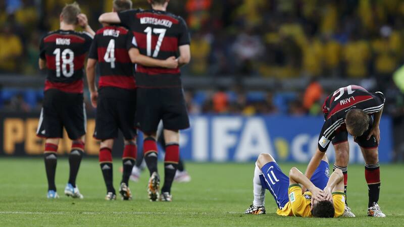 Con un pie en las semifinales, Low y sus dirigidos debían dar la prueba de carácter definitiva frente al anfitrión del torneo y sempiterno candidato al título, Brasil. Luego de superar los primeros tres minutos de presión asfixiante del equipo conducido por Luiz Felipe Scolari, el conjunto alemán piso firme y empezó a manejar la pelota con rapidez, precisión y verticalidad asombrosa. Así, en menos de media hora, le metió cinco goles al equipo brasileño. En el complemento, gritó gol solo en dos ocasiones más, pero pudieron ser muchas más. Müller abrió otra vez el marcador a la salida de un córner; Klose anotó su gol número 16 en Mundiales y superó a Ronaldo; Kross, en dos ocasiones; Khedira y Schürrle, también en dos oportunidades, consiguieron los siete goles alemanes. Sobre el cierre, el cuestionado Oscar, marcó el del honor para Brasil.