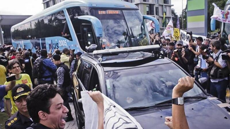 El autobús finalmente partió con escolta policial hacia la Granja Comary en Teresópolis, en las montañas del estado de Rio de Janeiro.