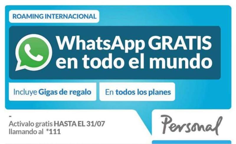 Antes del inicio del Mundial, Personal lanzó su promoción de roaming internacional. Con el Pack Mundo sus clientes que viajen al exterior ente junio y julio tendrán whatsapp gratis. Además, de acuerdo al destino de su viaje, los clientes contarán con cuotas de datos de 4GB, 1GB y 100MB para navegar en el exterior. El pack puede contratarse a través de la aplicación Mi Cuenta Personal, enviando un SMS con la palabra FMUNDO30 al 152 o comunicándose al centro de atención al *111. El servicio gratuito de Whatsapp incluye mensajería de texto, imagen, video y audio, pero no el servicio de llamadas vía esta aplicación. El beneficio también incluye llamadas entrantes bonificadas en países limítrofes y los Estados Unidos.