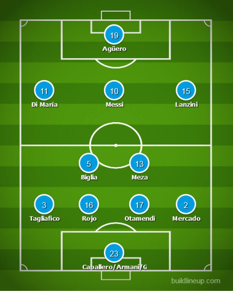 Por último, en el puesto de centrodelantero, Sergio Agüero, delantero de Manchester City de Inglaterra, ya totalmente recuperado tras la operación en su rodilla, volvió a jugar en el equipo titular en lugar de Gonzalo Higuaín.