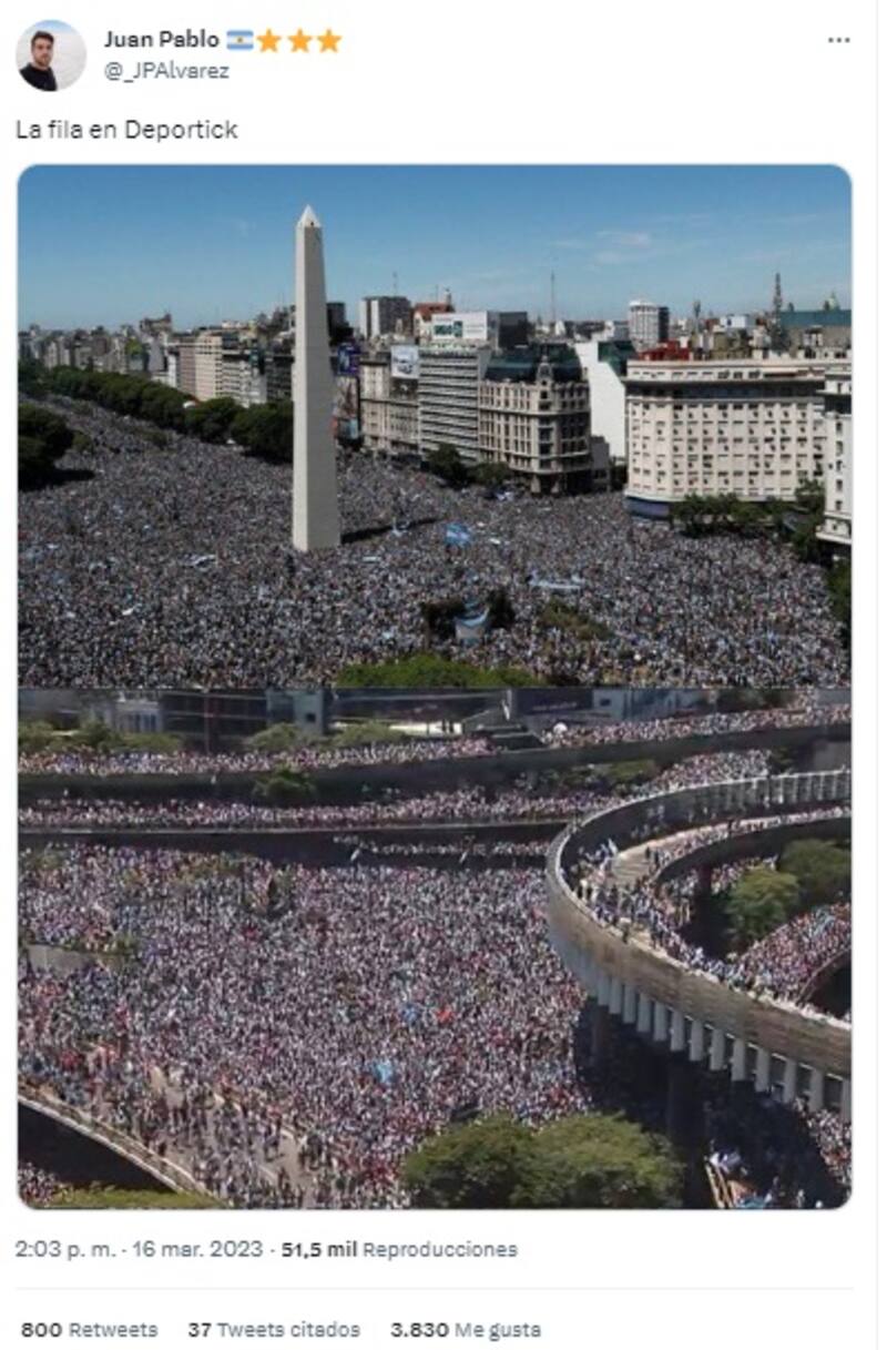 En esta ocasión, la compra se habilitó en el sitio web Deportick, desde las 14 horas. No obstante, a segundos de ingresar a la página, ya habían más de 1.000.000 de personas en la lista, cuando la capacidad del estadio Mas Monumental es de 83.214.