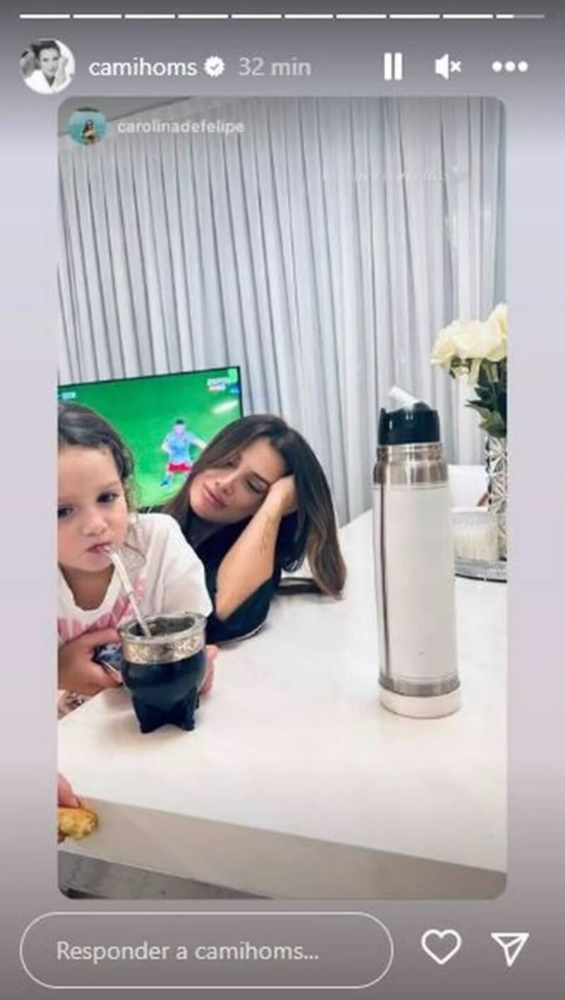 Si bien Camila Homs no dio ese detalle del nombre, una historia en su cuenta de Instagram delató algo que llamó la atención de todos sus seguidores este viernes por la noche. En una reunión con mates y pastafrola de por medio, sus dos amigas la etiquetaron en una mesa con su hija y un televisor de fondo. Allí se llega a ver que está en el canal de ESPN, donde se televisaba el partido entre Estudiantes (club del Principito) y Barracas Central.