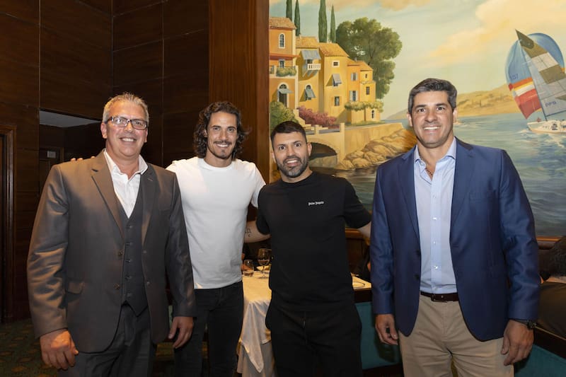 Entre los asistentes, el jugador de Boca se vio acompañado de su esposa Jocelyn Burgardt, el exfutbolista Sergio "Kun" Agüero y también por ejecutivos de Enjoy Punta del Este.