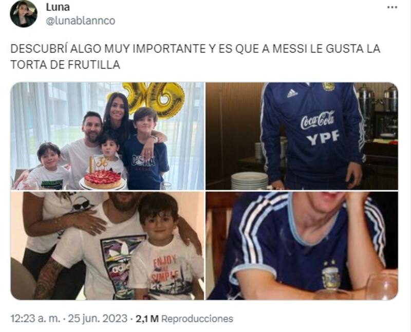 La joven afirmó que a Messi le encanta la torta de frutilla. El mismo gusto que eligió para estos 36 años y un sabor que, según las fotografías, es su favorito desde siempre.
