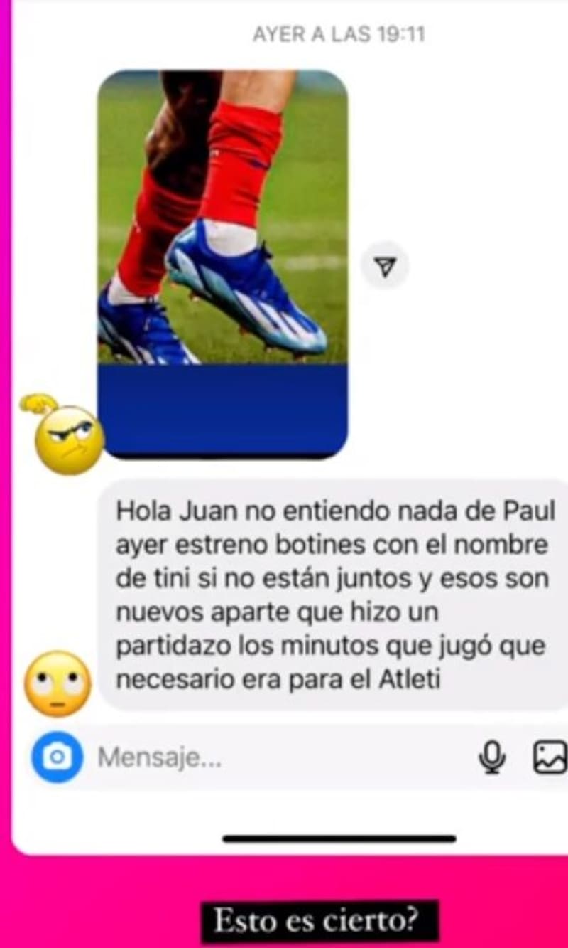A través de su cuenta de Instagram, el conductor de LAM dio detalles de la situación que motivó el runrún de un cara a cara entre el jugador y la artista. "No hay reconciliación. De Paul ayer fue a desayunar con Fran Stoessel en la casa de los padres. Tini no vive ahí hace mucho y no estaba tampoco", arrancó diciendo el periodista.
