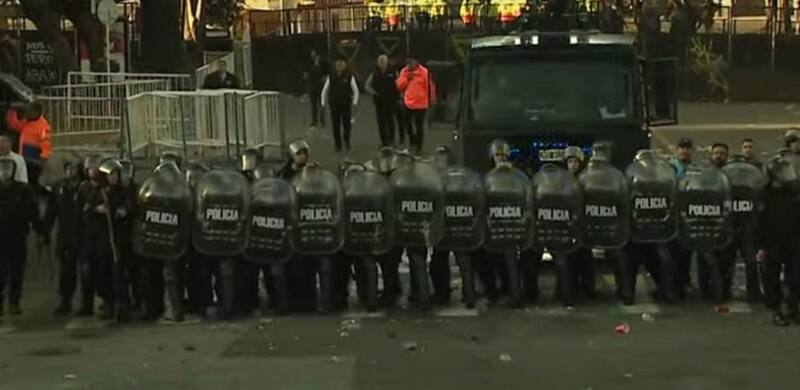 Hinchas de River se trenzaron con la policía en el Estadio Monumental, minutos antes de que comience el Super Clásico, que hoy disputarán River y Boca.