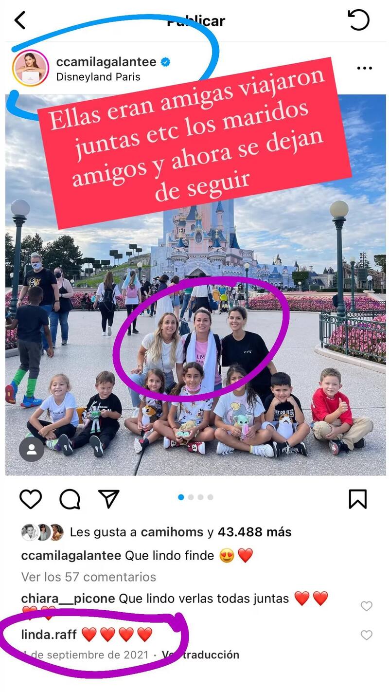 "Ellas eran amigas, viajaron juntas. Los maridos amigos y ahora se dejan de seguir", compartió Juariu, junto a la foto de las tres en Disney.