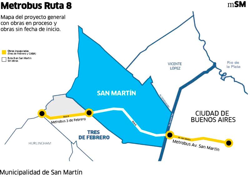 Se trata de la continuación del metrobus de 3,4 km, que va desde Arroyo Morón (partido de Tres de febrero) hasta la rotonda de la Ruta 4 (partido de San Martín), y que será extendido por 4,8 km más. Esto incluye 4,1 km entre la Ruta Provincial N° 4 y la Avenida Presidente Juan D. Perón, y 700 metros entre la calle Rodríguez Peña y la General Paz, en el partido de San Martín. La obra empalmará con el Metrobus de la avenida San Martín, en Capital Federal.