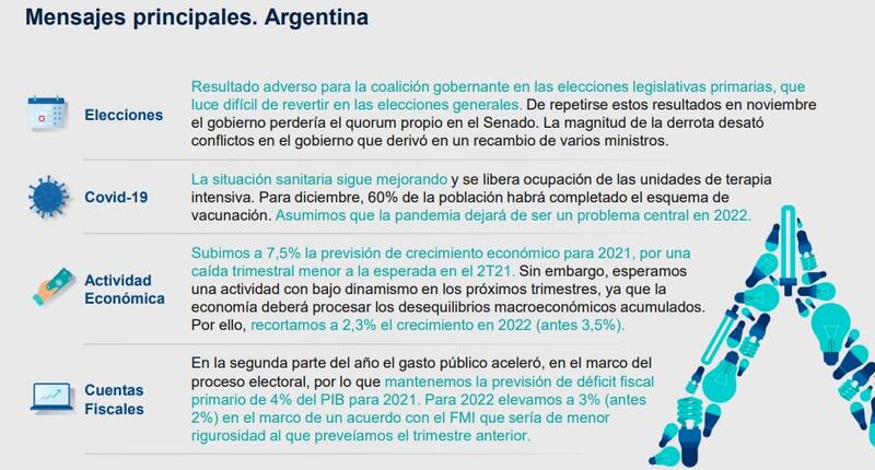 En ese sentido los economistas del banco recortaron a 2,3% su proyección sobre el crecimiento económico de la Argentina en 2022, contra el 3,5% el informe anterior.