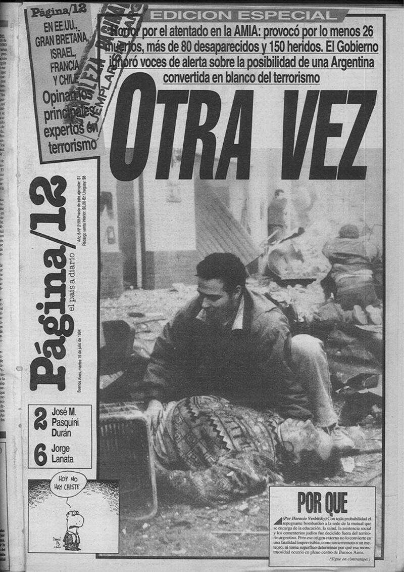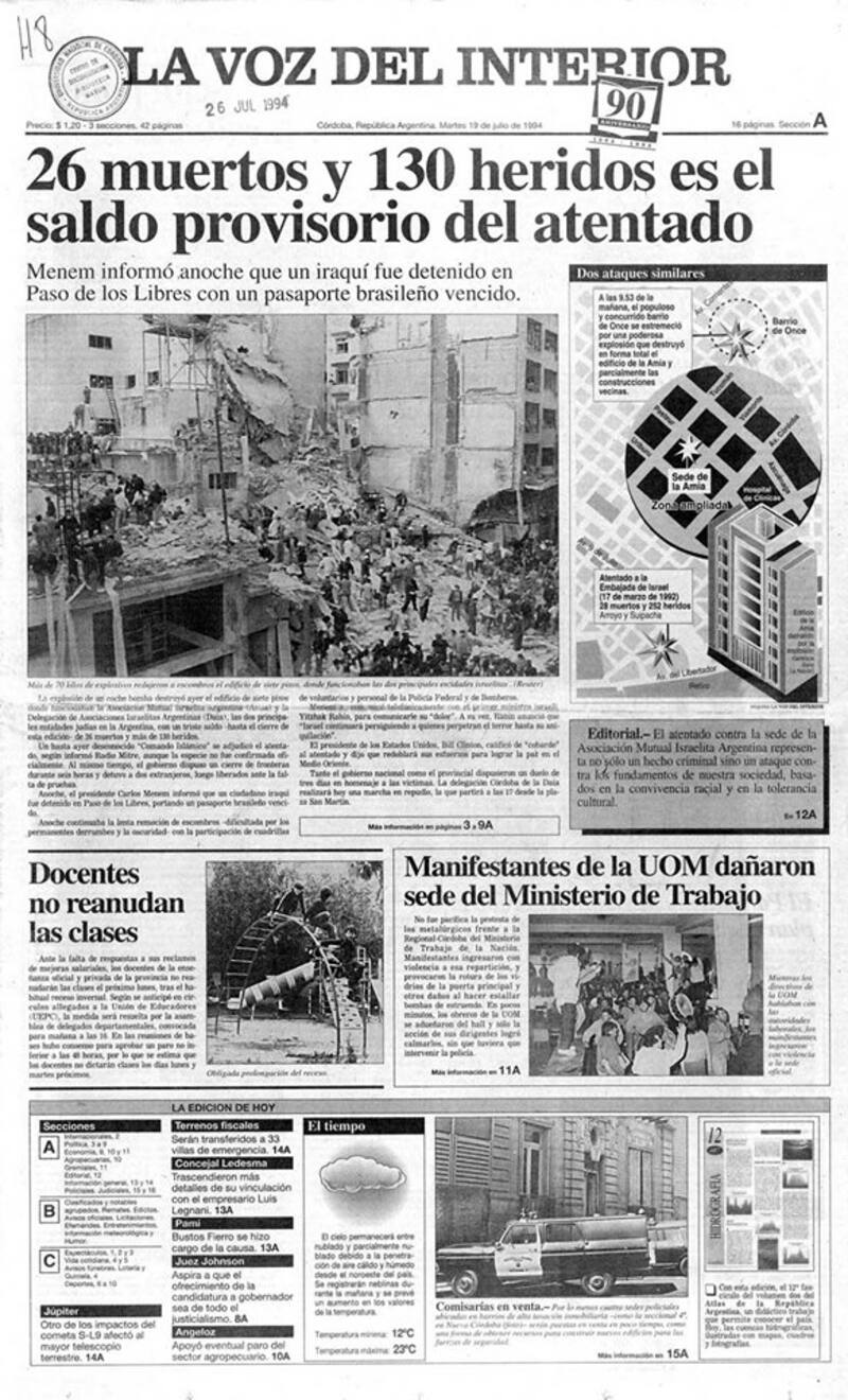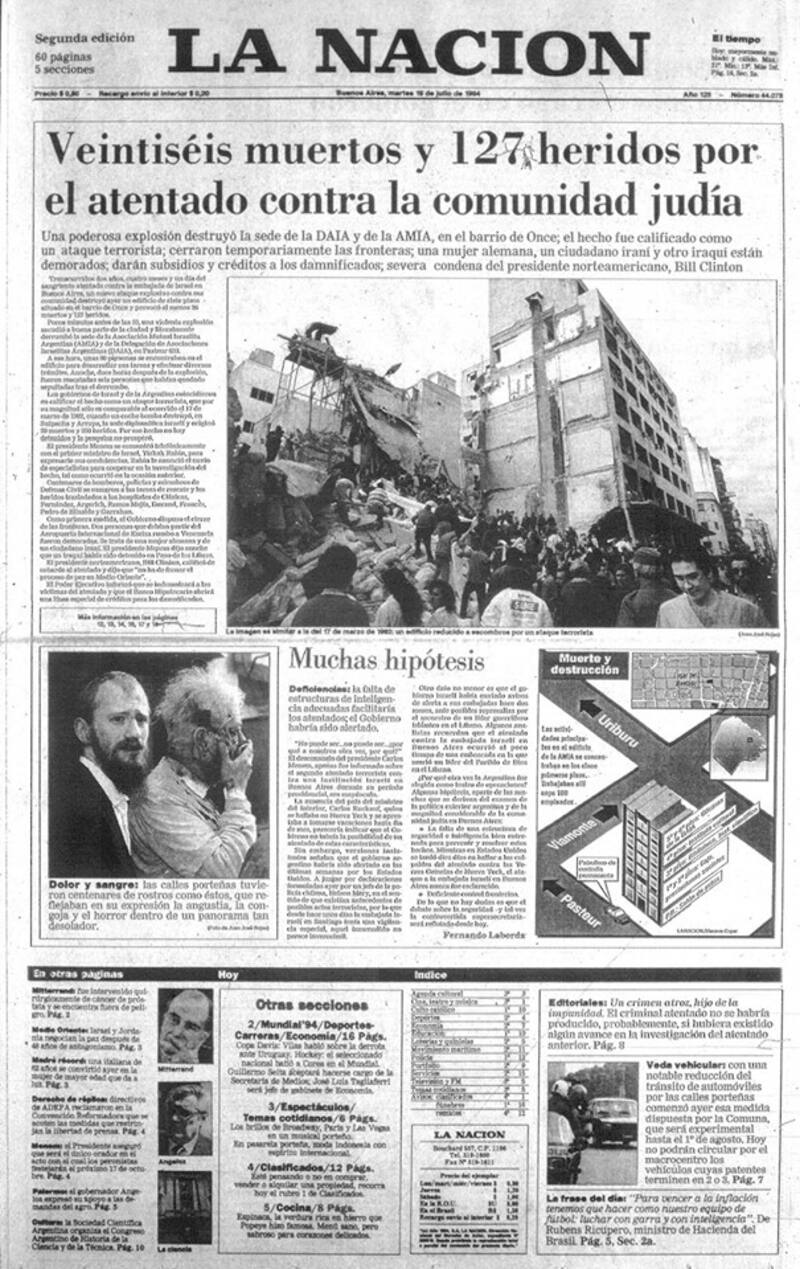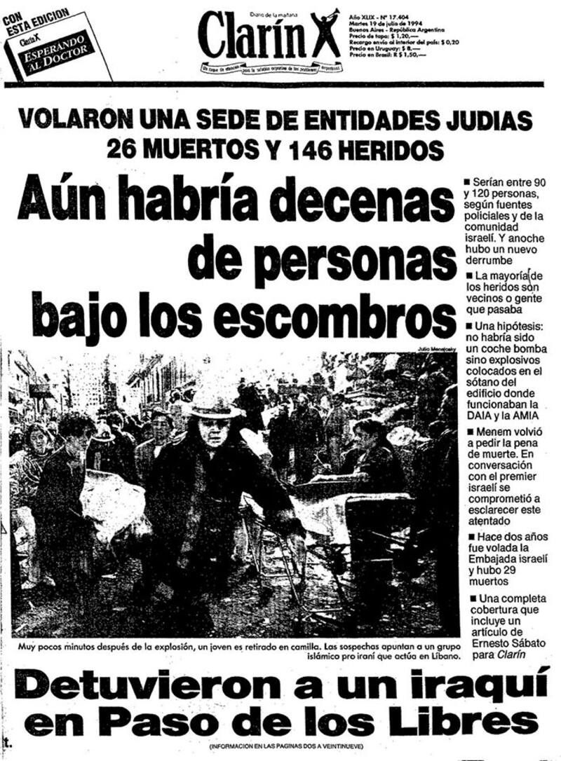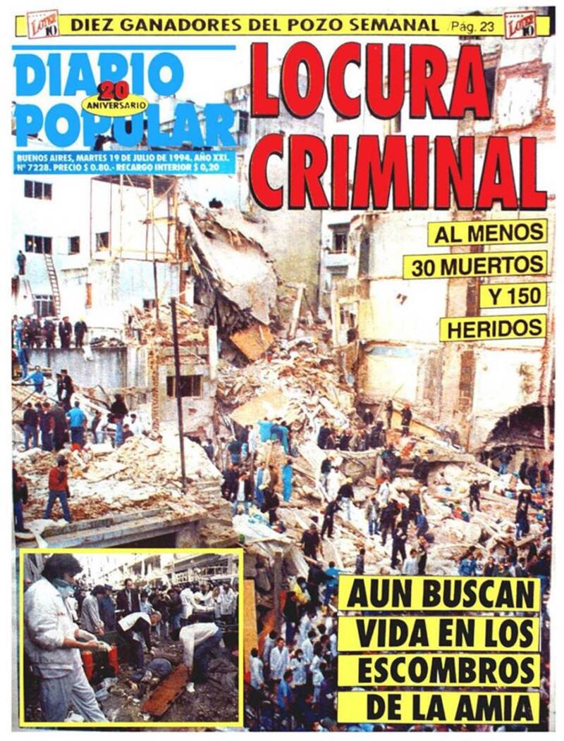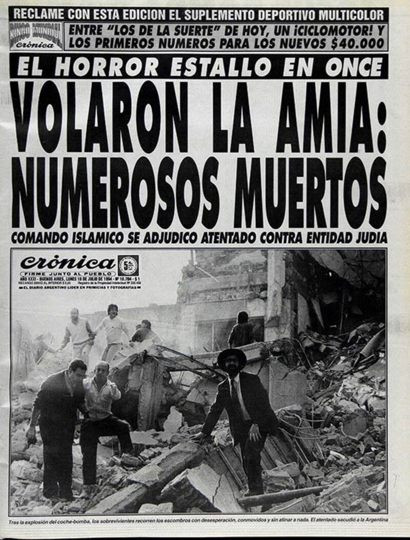 La foto de la sede de la Asociación Mutual Israelita Argentina completamente en ruinas copó las portadas de los principales medios del país.