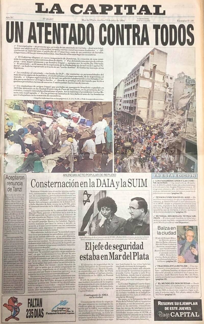 Hace 25 años, el país entero se conmovía por un nuevo atentado terrorista. Al de la Embajada de Israel, en 1992, le seguía el ataque a la sede de la AMIA, donde perdieron la vida 85 personas.