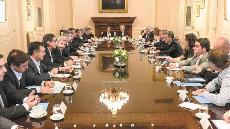 El encuentro se realizó en paralelo a la difusión del reporte en el Fondo Monetario internacional, que prevé que la inflación estimada para la Argentina superará el 19% y reducía de 2,5% a 2% el nivel de crecimiento, por lo que al término de la reunión el jefe de Gabinete, Marcos Peña, señaló que el temario fue "un repaso de la marcha de la economía".