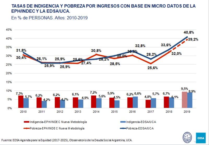 Si bien la serie estadística muestra similitudes con la del Instituto Nacional de Estadísticas y Censos (Indec), la metodología es distinta y sale cada seis meses, mientras que el de la UCA es trimestral.