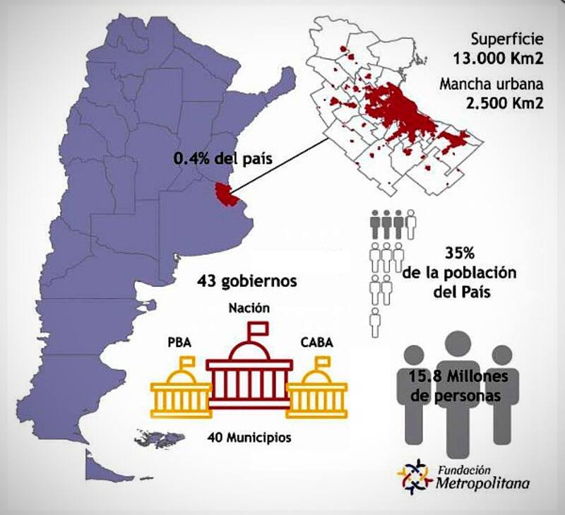 Según el censo de 2010, cuenta con 14,8 millones de habitantes, que representan el 37% de los habitantes de la Argentina. Para 2017, en tanto, se calculaba que el área comprendía a 15,8 millones de personas, ocupaba sólo un 0,4 por ciento de la superficie de la República Argentina y genera casi la mitad del PBI (48%), según datos de la Fundación Metropolitana.