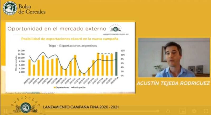 En ese sentido, la Bolsa de Cereales de Buenos Aires lanzó la Campaña Fina 2020/21 a través de la que proyectó una suba de 3% en la superficie sembrada que se destinará al trigo, así como una estimación inicial de producción superior a 21 millones de toneladas, es decir casi 12% por encima del ciclo actual y que, si se concreta, será récord absoluto.