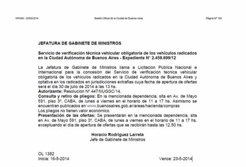 Después de la publicación en el Boletín Oficial de la Ciudad del llamado a licitación para los centros donde se realizará la Verificación Técnica Vehicular (VTV), están dados todos los pasos para aplicar en Capital la ley 4.111 aprobada en 2011.