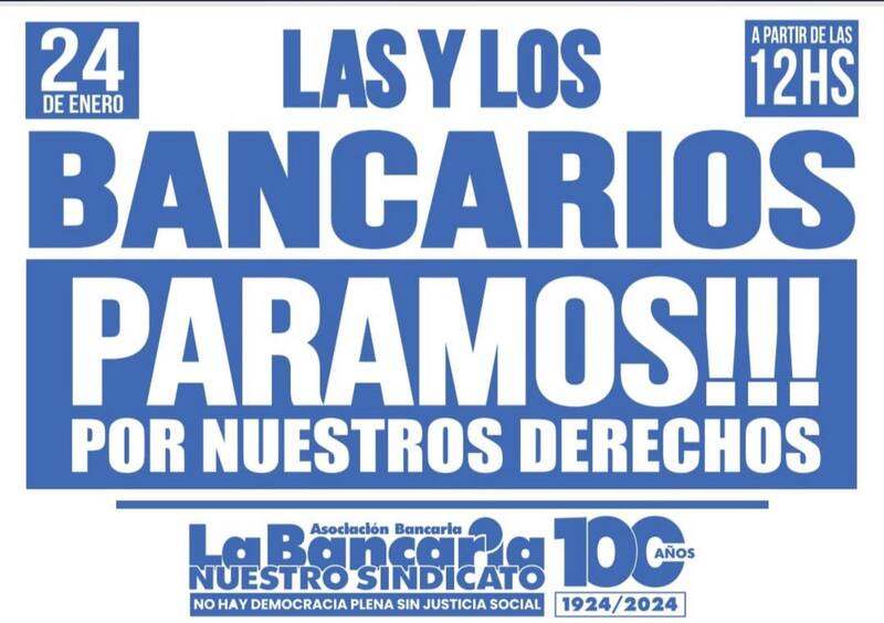 El miércoles tampoco habrá atención en los bancos de la Argentina desde las 12 de mediodía ya que el gremio que nuclea a sus trabajadores, La Bancaria, adhiere a la movilización que se producirá por la tarde y todas las sucursales permanecerán cerradas hasta el jueves.