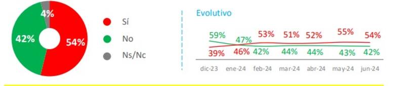 En este punto, se deteriora la creencia de que el ajuste que está haciendo la sociedad tiene un horizonte de sentido. En mayo había un diferencial positivo de 7 puntos.; en junio, se registra un diferencial negativo de 1 punto.