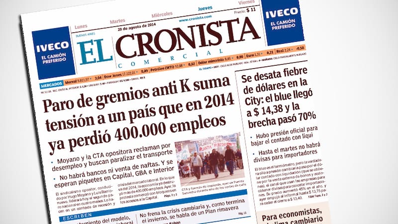 Para todos aquellos lectores que con motivo del paro nacional convocado por diversos gremios para hoy no pudieron adquirir la edición impresa, El Cronista ofrece la posibilidad de acceder sin cargo a la edición electrónica. Podés leer el diario como en papel.