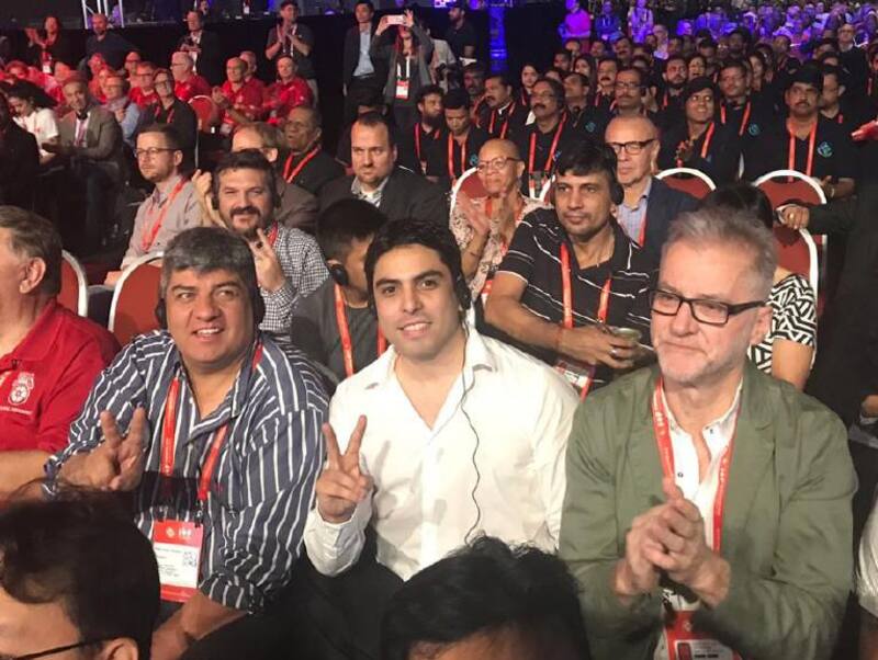 Pese a la bronca pública por el pedido de detención en su contra, Pablo Moyano aprovechó su visita a Singapur, a donde viajó el fin de semana para asistir a la cumbre la Federación Internacional de Trabajadores del Transporte, para compartir un tiempo su hermano el abogado Huguito Moyano. Así se los pudo ver sonrientes en el auditorio mientras escuchaban las exposiciones de la cumbre y departían sobre la complicada situación económica del país y el futuro de la ofensiva judicial que lo tiene al mayor de los hijos del líder camionero en el ojo de la tormenta.