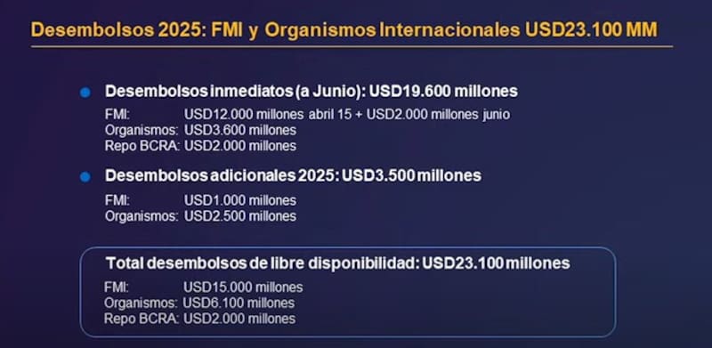 "El desembolso inicial del Fondo es de 12 mil millones, que van a estar entrando este martes. A eso se van a sumar otros ingresos inmediatos, llevando el número a u$s 19.600", resaltó Caputo.