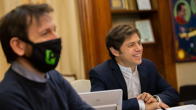 El gobernador estuvo acompañado por el presidente del Banco Provincia y Grupo Provincia, Juan Cuattromo y Valeria Dallera, presidenta de Provincia Leasing, durante la suscripción de los acuerdos que se realizó vía teleconferencia con los siete intendentes.