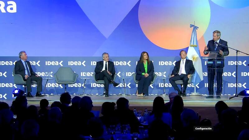 En este punto agradeció a los empresarios, pero también criticó su "desesperanza": "Tenemos la tasa de inversión más alta de los últimos 29 años y eso es gracias a ustedes, porque ustedes invierten, porque ven el vaso medio lleno, ven las curvas que suben".