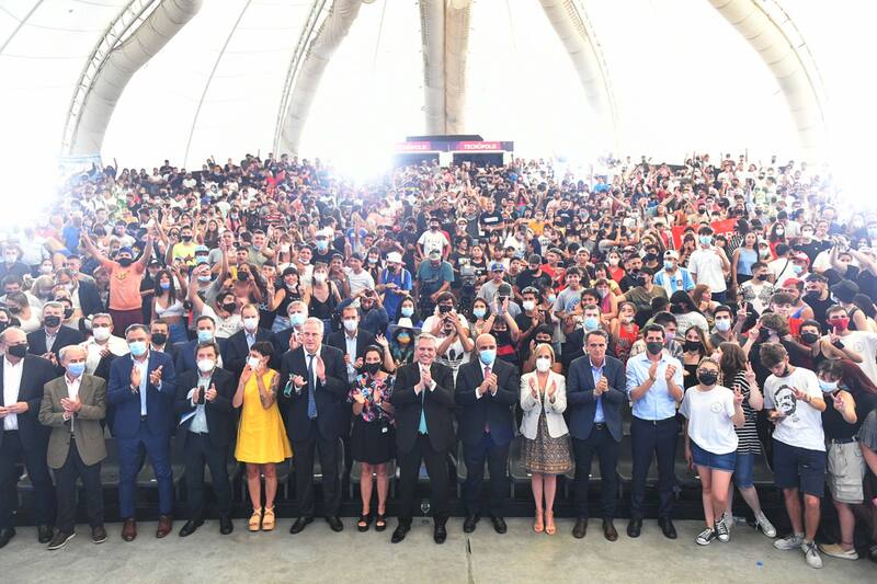 En la actividad, el Presidente también estuvo acompañado por el jefe de Gabinete, Juan Manzur; los ministros Gabriel Katopodis (Obras Públicas), Jaime Perczyk (Educación) y Tristán Bauer (Cultura), entre otros.