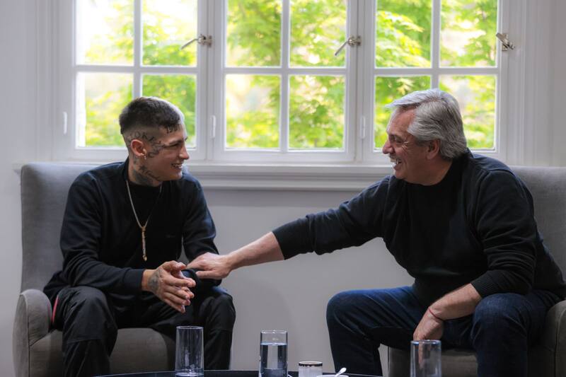 Una "charla distentida". Así describen desde Presidencia la cita que mantuvieron en la Quinta de Olivos Alberto Fernández con el trapero L-Gante, que será difundida por las redes del mandatario a partir de las 20.