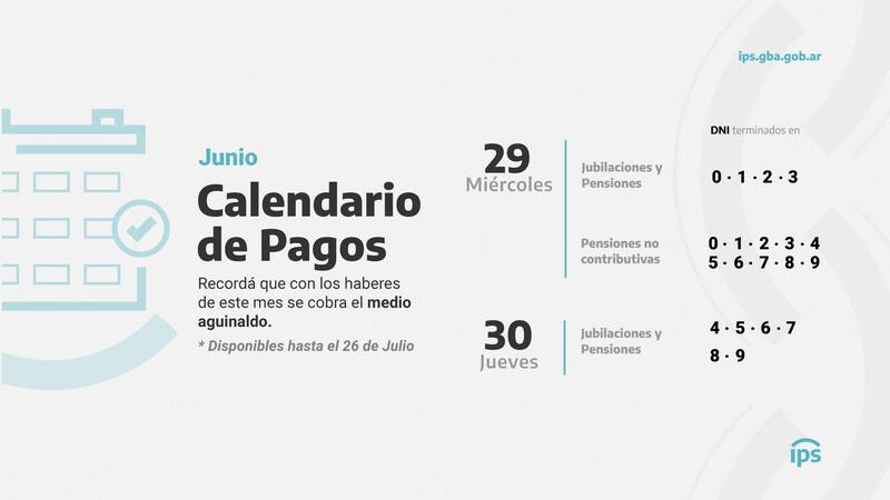 El IPS bonaerense activará este miércoles 29 de junio, el calendario de cobro para jubilados y beneficiarios de las Pensiones no Contributivas (PnC), según la terminación del DNI.
