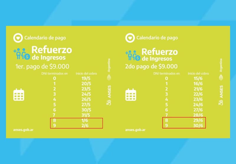 La suma de $ 9000 se adicionará a la primera liquidación que percibió este grupo el 1 junio pasado, de tal forma que a diferencia de lo que sucedió con los demás cronogramas, el sexto mes del año concluirá como el escenario de cobro unificado.
