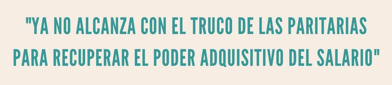 Por eso, creo que si uno apunta a un programa antiinflacionario no es que tiene que tener como objetivo bajar la inflación, el verdadero objetivo de un plan antiinflacionario tiene que ser subir el salario real ¿cómo? bajando la inflación, porque si uno hace que los salarios corran de atrás, eso es una carrera que se espiraliza y no tiene ningún sentido. Me parece que hace más o menos cuatro años está bastante claro que ya no alcanza con el truco de las paritarias para recuperar el poder adquisitivo del salario.