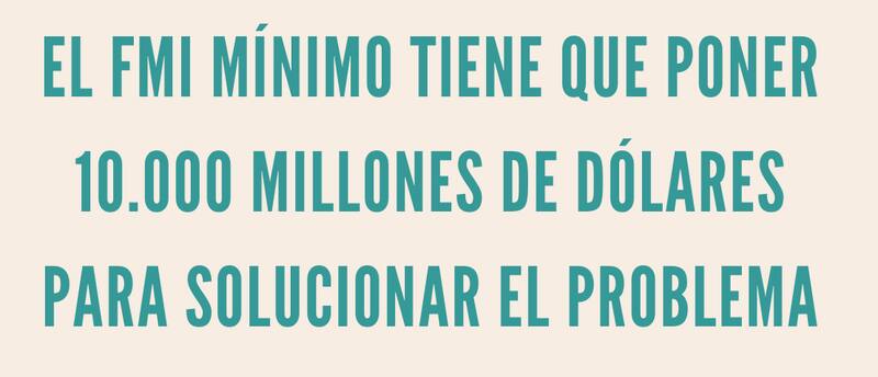 Hoy por hoy, el único que le puede dar dólares a la economía Argentina es el Fondo. Si quiere arreglar el problema que él mismo generó con Argentina lo que tiene que hacer es poner plata ¿Cuánta? mucha. Mínimo, 10.000 millones de dólares, sin eso no vamos a salir de este embrollo y creo que por eso el acuerdo cuesta tanto.