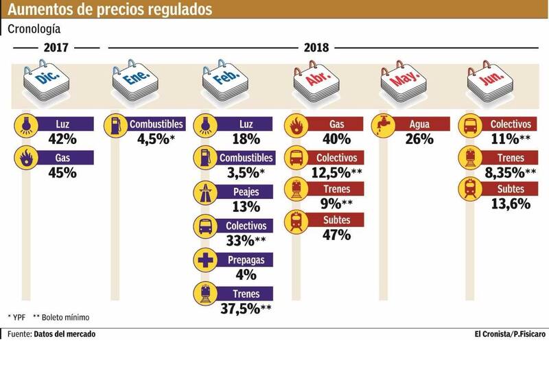 El Gobierno terminó 2017 con la recordada "recalibración" de metas de inflación, la devaluación del peso contra el dólar y el previsible traslado a precios. Apenas iniciado el año el ministro de Transporte, Guillermo Dietrich, anunció el lanzamiento de la red SUBE (descuentos por combinar medios de transporte) pero acompañado por un alza de los viajes en colectivos (33%) y trenes (37,5%), más dos incrementos programados para abril y junio. Está previsto también que los viajes en subte en la Ciudad de Buenos Aires se ajusten 47% el 1 de abril y otro 13,6% en junio.