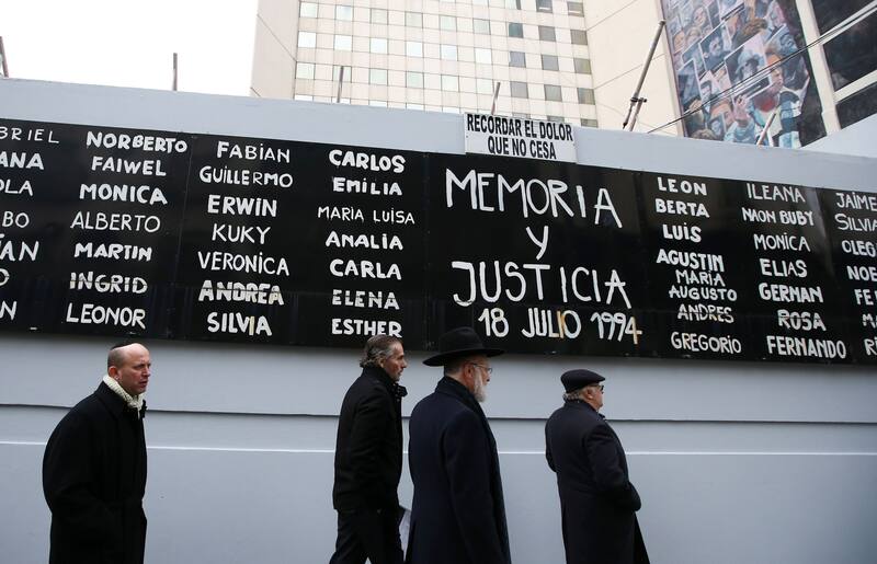 "La causa judicial es un fracaso humillante para la Argentina. No se ha podido atrapar ni siquiera a uno de los múltiples responsables de semejante atrocidad. Los canallas, miserables y asesinos de 85 personas siguen disfrutando de su vida diaria, paseando por el mundo con total libertad. ¿Cómo se explica tanta impunidad?", planteó Amos Linetzky, el nuevo presidente de la Asociación Mutual Israelita Argentina, en el escenario de la sede reconstruida en la calle Pasteur.
