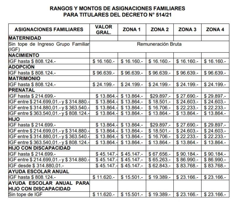 - Asignación Familiar para titulares del Decreto N° 514/2021.