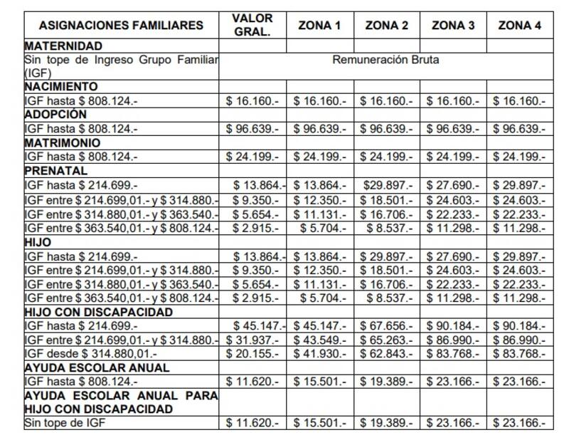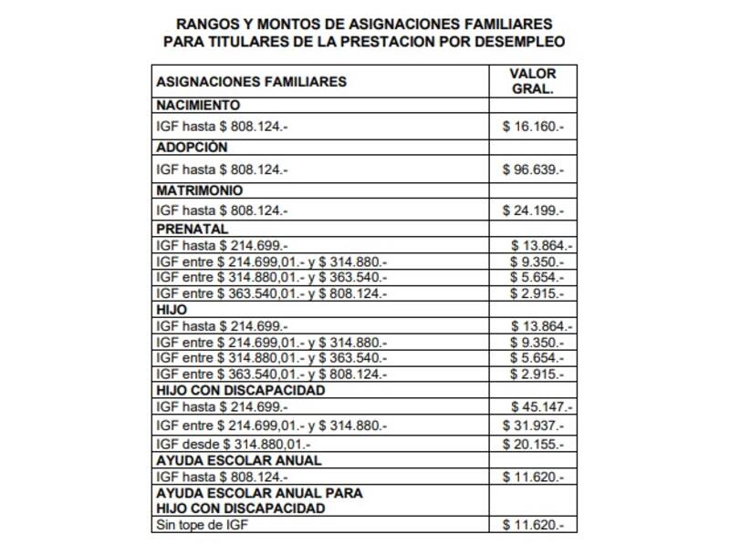 - Asignación Familiar para trabajadores en relación de dependencia y titulares de la Ley de Riesgos del Trabajo;
