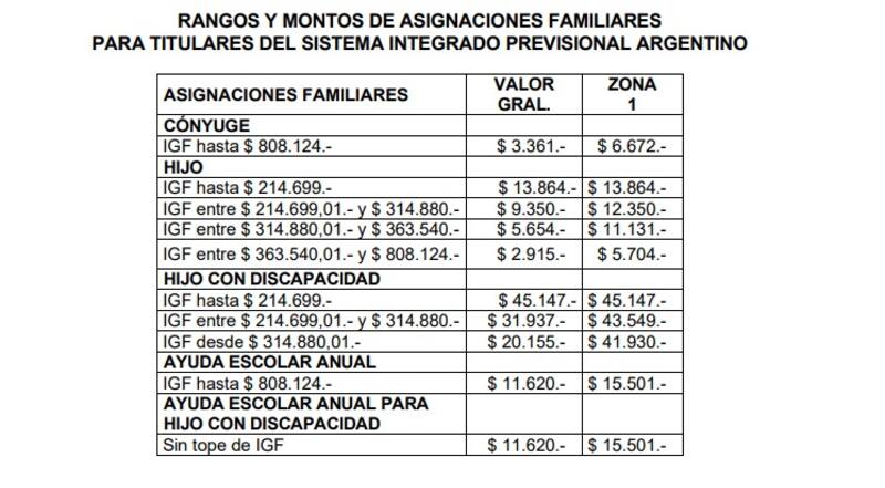 - Asignación Familiar para titular del Sistema Integrado Previsional Argentino (SIPA);