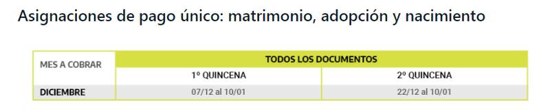 ASIGNACIONES DE PAGO ÚNICO: MATRIMONIO, ADOPCIÓN Y NACIMIENTO