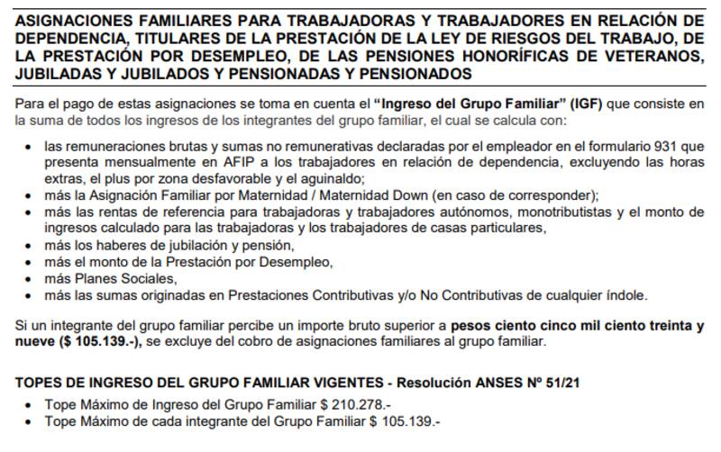 "Para el pago de estas Asignaciones se toma en cuenta el "Ingreso del Grupo Familiar" (IGF) que consiste en la suma de todos los ingresos de los integrantes del grupo familiar", detalla el texto oficial.