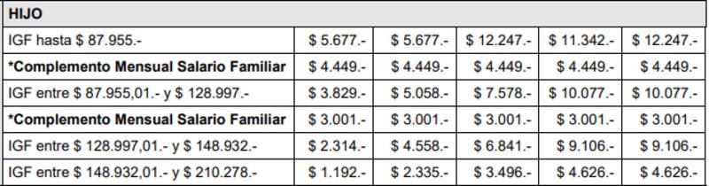- ¿Cuánto es el monto del salario familiar por hijo?
