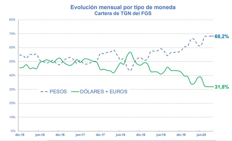 En total, si la cartera del FGS se mide en dólares, en el tercer trimestre las tenencias crecieron un 5,4% respecto a fines de junio y rondaban los u$s 43.600 millones. En el segundo cuarto del año, había crecido 12,4%, en tanto que en los trimestres anteriores la variación había sido negativa, de -8,5% en tercio final de 2019 y de -7,6% en el primer trimestre del año.