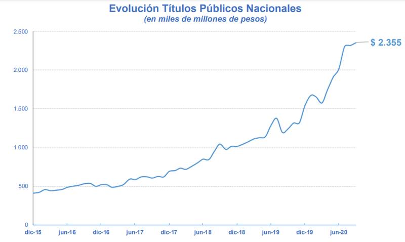 En tanto, los títulos emitidos por entes estatales volvieron a subir y ya superaron los $ 100.834 millones, luego de que en junio acumularan $ 88.659 millones. Se trata de un ascenso constante que continúa la dinámica alcista de los últimos trimestres, dado que en diciembre de 2019 ascendía a $ 77.883 millones y en septiembre, a $ 67.498 millones, aunque sigue representando el 3% de la cartera.