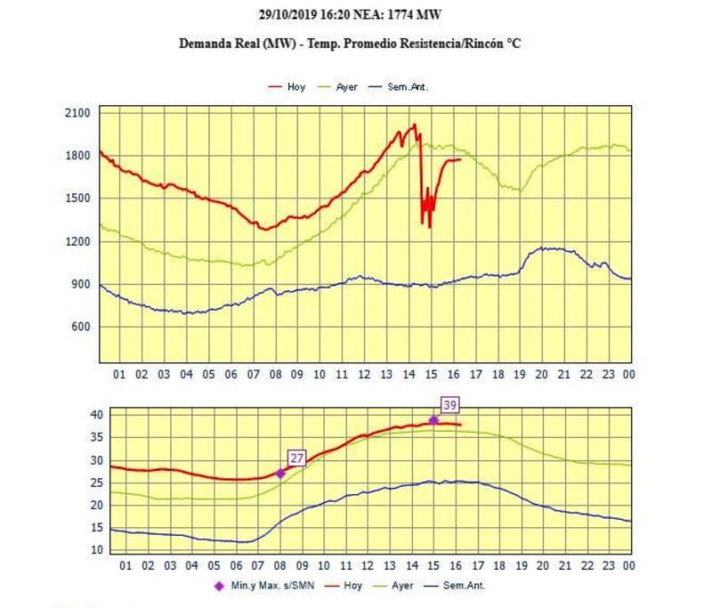 El origen de la falla recién está bajo investigación, aunque algunos señalan la extremadamente alta temperatura que se registra en el NEA. En Resistencia, capital chaqueña, había 38,7° a las 15 de este martes 29.