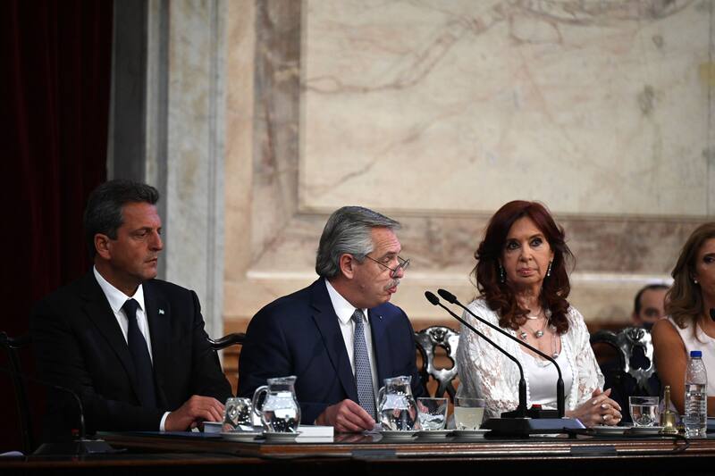 "Nos han tocado tiempos difíciles signados por crisis sanitarias, económicas y bélicas", dijo Alberto Fernández en la apertura de su discurso.