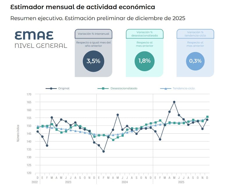 El Estimador Mensual de Actividad Económica creció 1,8% mensual en diciembre (sin estacionalidad) y 4,4% en 2025 🇦🇷🇦🇷🇦🇷
