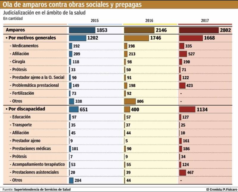 Los números de la realidad parecen justificar el apuro oficial por la creación del organismo y el respaldo que la iniciativa reúne entre los actores del sistema de salud: Solo entre enero y el 18 de octubre de este año se presentaron ante la justicia 2802 amparos que reclamaron a obras sociales y prepagas cubrir procedimientos, medicamentos o instrumentos médicos no incluidos en el PMO, según el registro que releva la Superintendencia de Servicios de Salud (SSS) en base a los informes suministrados por los efectores del seguro de salud. De las 2802 presentaciones, 1668 casos correspondieron a reclamos por motivos generales como medicamentos (335), afiliación (527), cirugías (190), prótesis (71) y problemática prestacional (423), en tanto que los restantes 1134 estuvieron motivados por planteos en materia de discapacidad (prestaciones, transporte, seguridad, afiliación, etc).