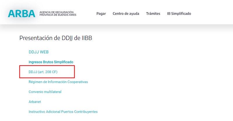 Para comenzar el trámite, es necesario ingresar en la web de ARBA www.arba.gob.ar, dirigirse a la opción "DDJJ y Deducciones informadas" dentro de Ingresos Brutos, hacer clic en "DDJJ (art. 208 CF)" y seguir los pasos que indique el sistema.